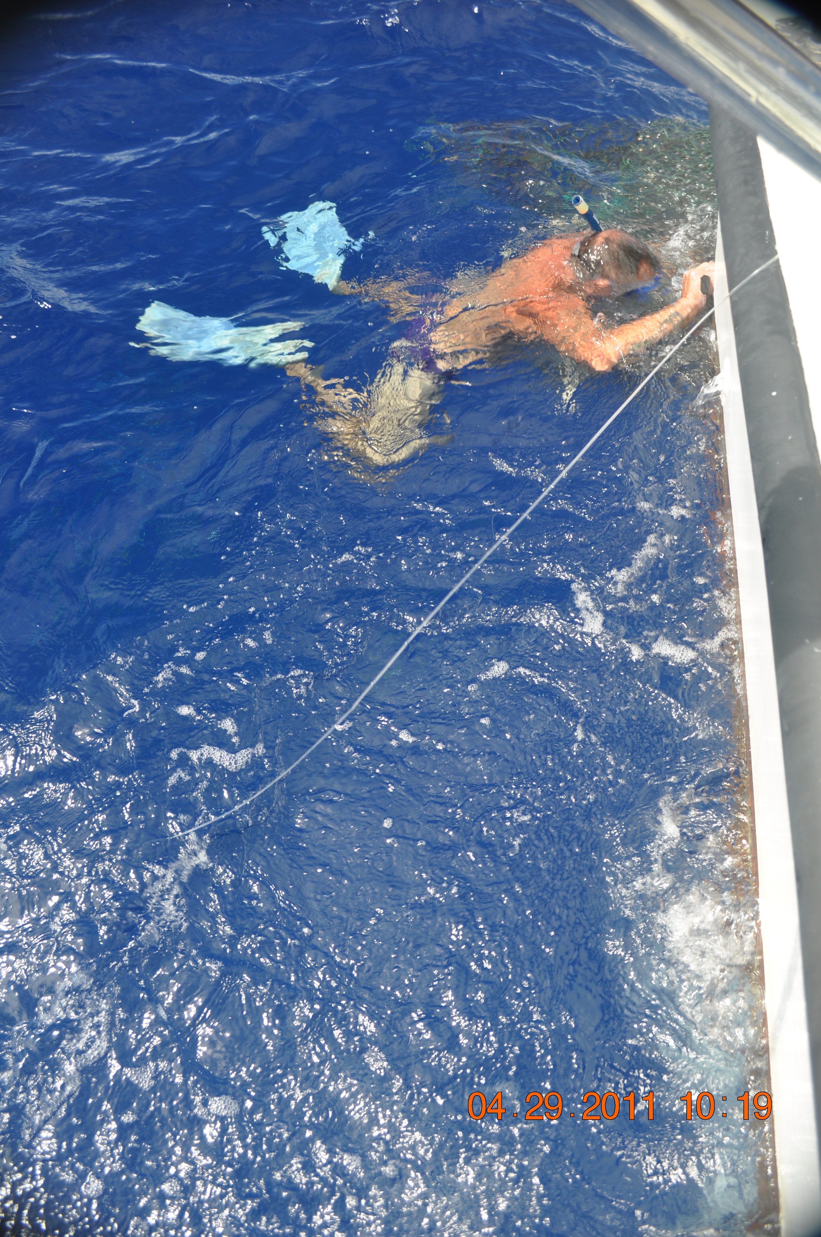 Before closing our Poetic journey, I related an event that happened to my husband, Capt. Tommy D., one fateful day, while out on the ocean in April 2011. He and his crew of three men, David E. Johnson, Dr. Steven Wonderlich and Mike Ordenstein, had three separate encounters with floating garbage that day. Two times the engine had stopped. The second time, they were forced to jump into the water and cut a 1-1/2″ cargo net from the boat’s prop. It was a grueling ninety minutes, as three of the four men  had to take a turn in the water.